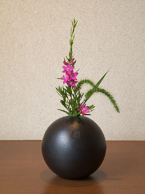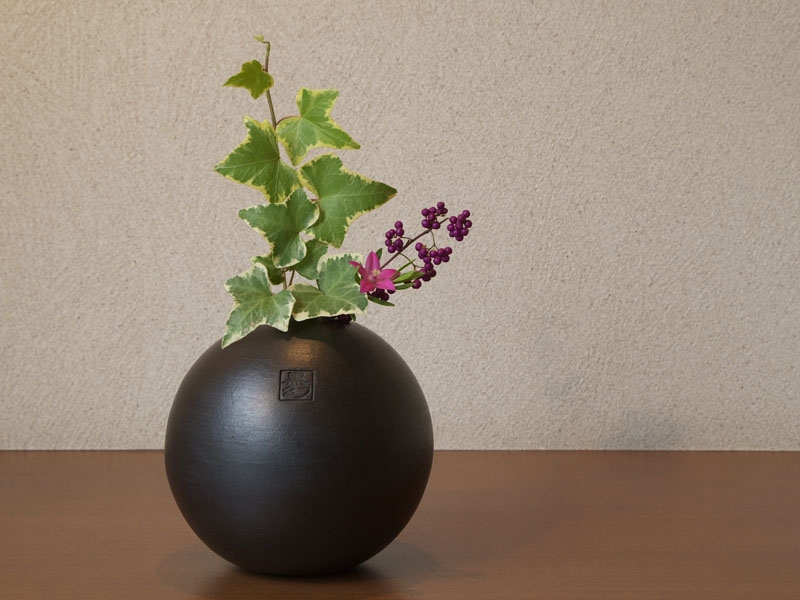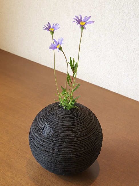 可憐でかわいらしい野の花は、黒幻焼の質感にピッタリです。