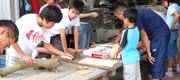 木の温もりに触れながら、いろいろな形の木を切って組み合わせて、オリジナルの作品を作ります。椅子や本立てなど、自由自在に作りましょう。
